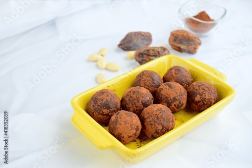 chocolate, breakfast, healthy, snack, almond, date, homemade, white background, vegan