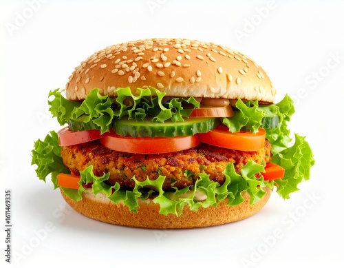 Vegan Gourmet Isolation: Hyperdetailed Plant-Based Burger with Rainbow Vegetables on Pure White