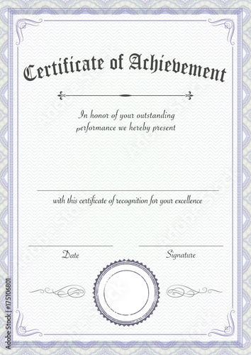 Vertical classic certificate of achievement paper template