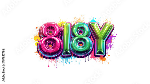 Vibrant 818Y Design Colorful Balloon-Style Numbers with Paint Splatter