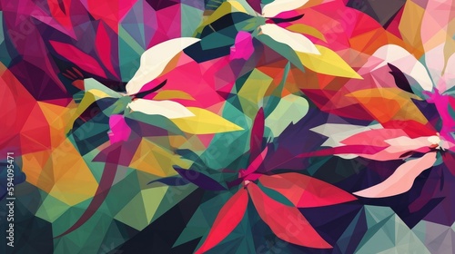 Vibrant abstract azalea flowers in geometric shapes