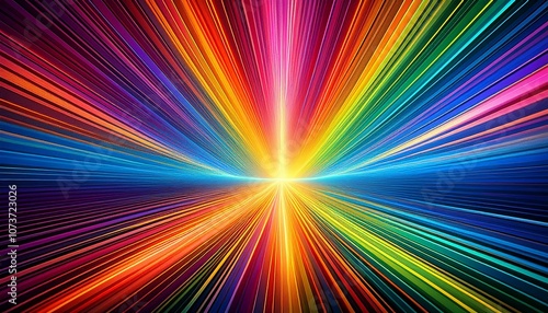 Vibrant, abstract rainbow stripes radiating outwards from a bright, central light.