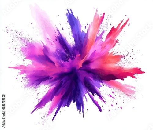 Vibrant Abstract Splash of Purple, Pink, and Red Paint with Dynamic Motion Effect on White Background for Artistic Designs and Creative Projects