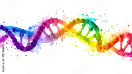 vibrant and colorful DNA helix illustration symbolizing diversity, health, and scientific innovation, with focus on inclusivity and awareness. Pride month health awareness concept