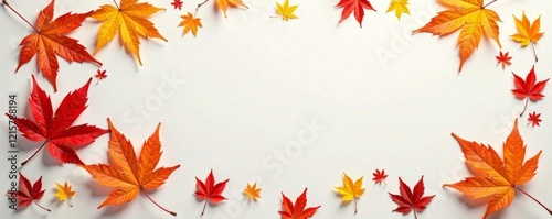 Vibrant autumn leaves arranged in a circular frame on a white background.