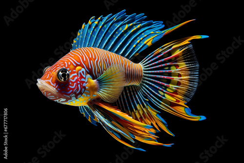 Vibrant beauty of a Cichlid which is renowned for its striking coloration and dynamic fin structure on black background. isolated