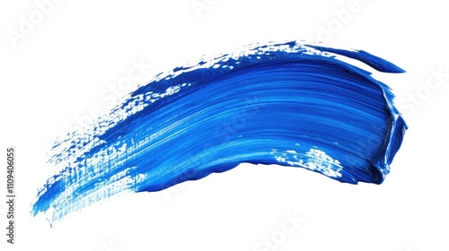 Vibrant blue paint stroke on a white background, showcasing texture and depth.