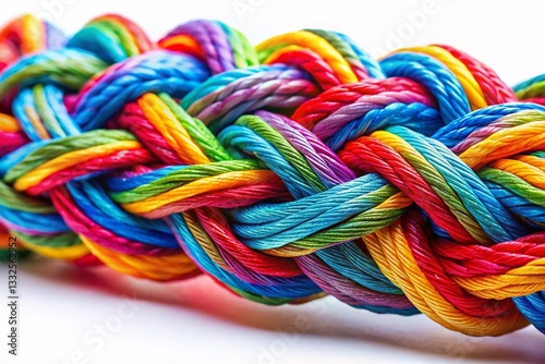 Vibrant Braided Rope Art: Colorful Knotted Design on White Background