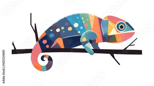 Vibrant chameleon resting on a branch