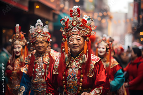 group, people, colourful, costume, walking, street, chinese new year, celebration, festive, culture, tradition, parade, lively, vibrant, community, camaraderie, lantern, dragon, drum, fireworks, event, joyful, happiness, multicultural, diversity, auspicious, chinese culture, folk, exciting, cheerful