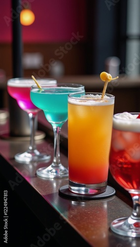 Vibrant cocktail table with festive party drinks