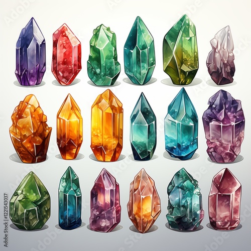 Vibrant collection of watercolor crystal illustrations for art and design projects