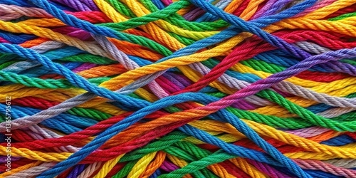 Vibrant colored strings woven together in a harmonious pattern, intertwined, diversity, intertwined