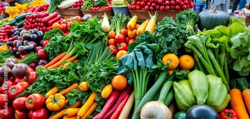 Vibrant colorful array of fresh farm vegetables at a market stall, market stall, local