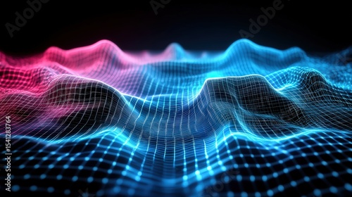 digital, wave, pattern, mesh, line, glowing, vibrant, abstract, technology, futuristic, blue, pink, aglow, neon, network, grid, hologram, light, science, design, smooth, flowing, visualisation, motion, dynamic, high technology, digital artwork, modern, creative, fantasy, waveform, illumination, energy, electricity, cyber, innovation, virtual