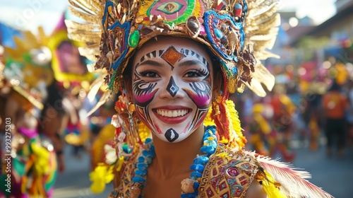 filipino, woman, festival, tribal, face, paint, elaborate, costume, dancing, street, celebration, bright, colours, cultural, tradition, philippines, indigenous, traditional, festive, performance, parade, event, colourful, ethnic, party, joyful, vibrant, heritage, attire, happiness