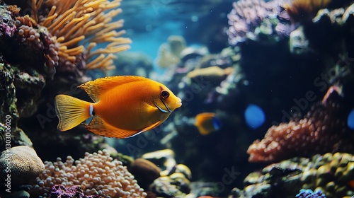 Vibrant Fish Swimming Among Colorful Coral Reef in a Scenic Aquarium Environment
