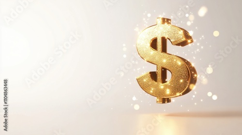 Vibrant floating gold dollar sign in 3D cartoon style, surrounded by subtle sparkles, on a clean white backdrop