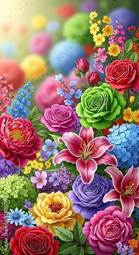 flower, colourful, vibrant, bloom, floral, garden, nature, rose, lily, hydrangea, bouquet, arrangement, flower petals, blossom, spring, summer, beauty, bright, flora, decorative, design, art, illustration, painting, artwork, background, wallpaper, texture, pattern, fresh, growth, bloom, high-coloured, lush, abundance, display, collection, variety, spectrum, hue, tint, shade, tone, pigment, chromatic, radiant, cheerful, joyful, delicate