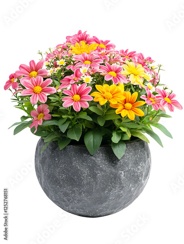 Vibrant flower arrangement in decorative pot indoor setting floral display nature's beauty