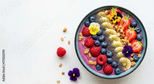 Vibrant Fresh Fruit Smoothie Bowl A Refreshing and Healthy Flat Lay Delight with Edible Flowers..jpg