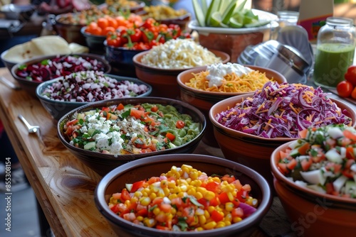 taco, bar, colourful, lively, festive, interactive, meal, filling, fresh, vegetable, cheese, sauce, flower, arrangement, bowl, assortment, fun, celebratory, diverse, vibrant, party, dining, cookery, healthy, delicious, buffet, table, culinary, food, decorative, enjoyment, gathering, homemade, ingredient, multicultural, savoury, social, special occasion, variety, zesty, flavorful