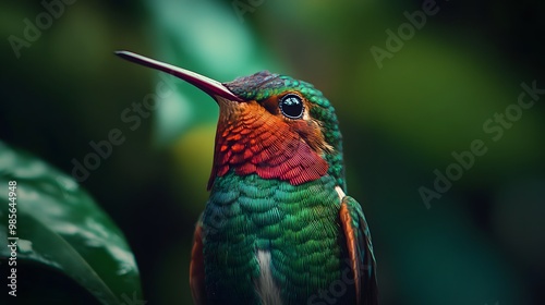 Vibrant Green and Red Hummingbird Close Up in Nature