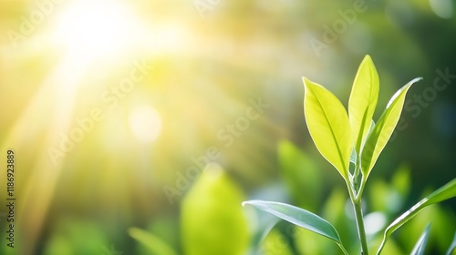 Vibrant Green Leaves in Sunlight Perfect for Nature and Eco Friendly Themed Projects : Generative AI