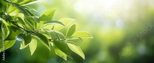Vibrant green leaves in sunlight with soft bokeh effect