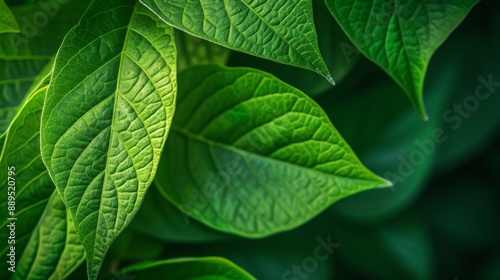 Vibrant green leaves with intricate details and textures