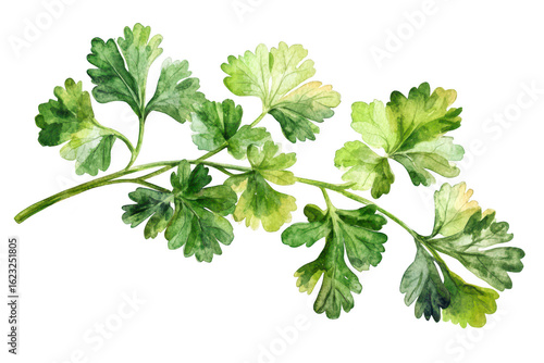 Vibrant green parsley sprigs with delicate leaves and a slender stem isolated on transparent background