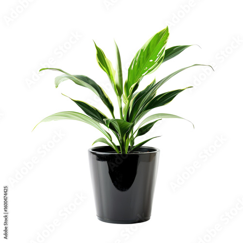 plant, houseplant, indoor, green, white, variegated, leaf, foliage, pot, dark, black, ceramic, potted, tropical, lush, vibrant, nature, decor, home, garden, growing, healthy, alive, closeup, isolated, detail, fresh, beauty, natural, stripes, pattern, decorative, design, home decor, indoor plant, growth