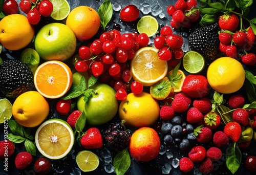 vibrant ingredients refreshing beverages displayed sleek surface bright colors textures, drink, cocktail, smoothie, mocktail, blend, infusion, preparation