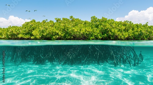 mangrove, forest, ecosystem, vibrant, underwater, clear, turquoise, water, tree, green, marin, wildlife, habitat, island, climate, snorkel, tour, coastline, adventure, beauty, transition, river, tranquil, estuary, tropical, scenic, diving, species, flora, lagoon, landscape, fish, ocean, shelter, coastal, sunny, depth, carbon, filtration, scenery