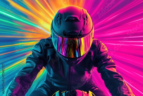 Vibrant Motorcycle Rider with Colorful Motion Background Effects