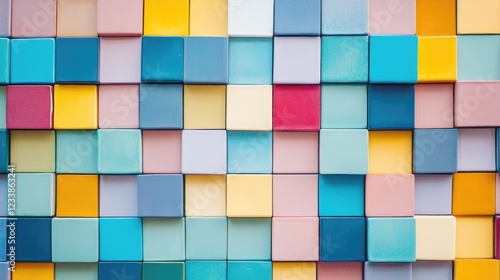 Vibrant Multicolored Square Tile Pattern Background with Clear Space for Text and Design Elements