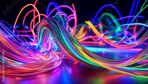 vibrant, neon, cable, dazzling, colours, mesmerizing, abstract, display, dynamic, movement, illuminated, trail, light, technology, glow, bright, design, artistic, optical, energy, pattern, aesthetic, creativity, digital, flowing, streaming, futuristic, illumination, abstract art, optical, colourful, texture, motion, light, radiance, swirling, aglow, captivating, scene, spectacle, high technology, network, connectivity