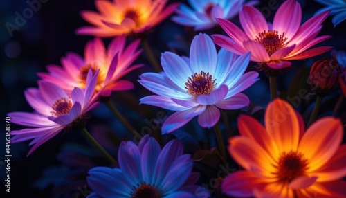 Vibrant Neon Flowers A Close-Up of Illuminated Blooms in Striking Hues