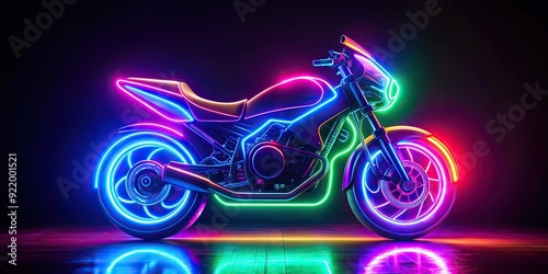 motorcycle, neon, technology, dark background, vibrant, light, glowing, electric, illumination, dynamic, energetic, speed, nightlife, colourful, transportation