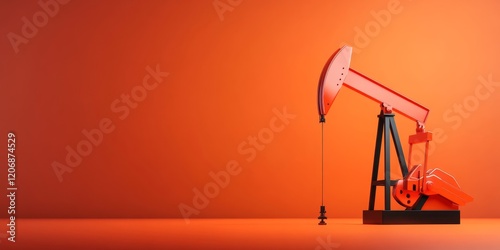 Vibrant oil pump jack against an orange backdrop in a minimalist setup
