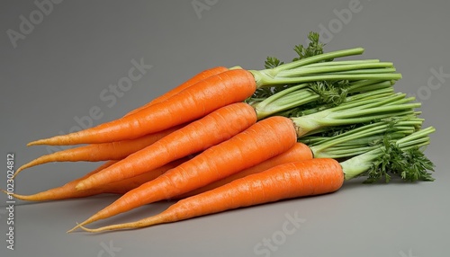 Vibrant orange carrots artfully arranged on a neutral background, highlighting their texture