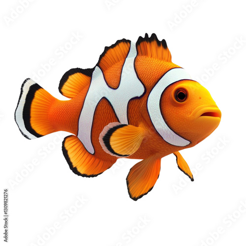 clownfish, anemonefish, fin, tail, vibrant, colourful, marine life, ocean, sea, reef, tropical fish, swimming, graceful, joyful, happy, bright, cheerful, high-coloured, detailed, beautiful, wildlife, nature, animal, portrait, closeup, digital artwork, illustration, background, stripes, black-and-white, red, yellow, many-coloured