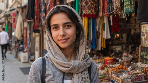 smiling, missy, middle east, foulard, vibrant, marketplace, istanbul, colourful, fabric, spice, closeup, portrait, standing, decorative, traditional, cultural, ethnic, happy, beautiful, authentic, local, souk, bazaar, culture, travel, oriental, eastern, happiness