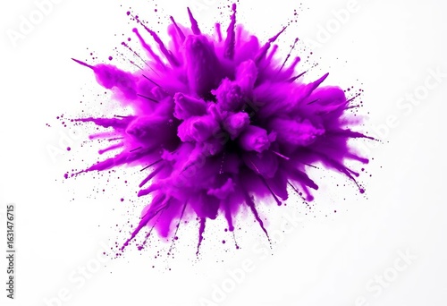 Vibrant purple powder cloud exploding on white , dynamic, intense