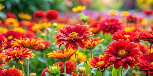 Vibrant red and yellow flowers in full bloom in a garden, botanical, colorful, petals, nature, vibrant, bloom, spring, garden