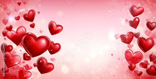 Vibrant red hearts float on a pink gradient background, with a central blank area ready for text or graphics, setting the stage for romantic themes.