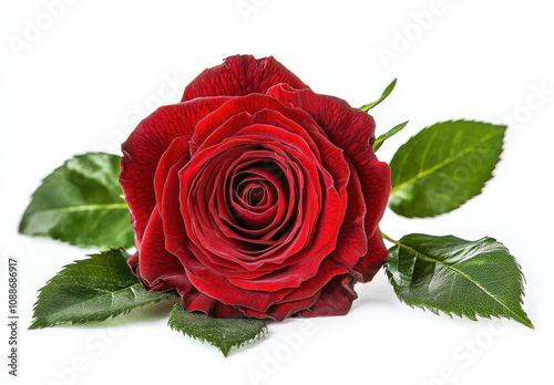 vibrant red rose with lush green leaves, symbolizing love and beauty. Perfect for romantic occasions or floral arrangements