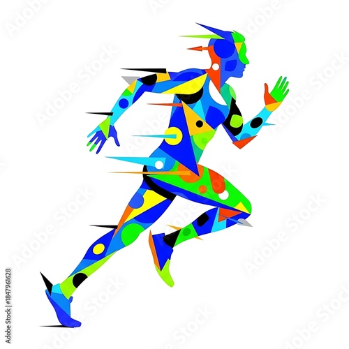 runner, motion, colourful, geometric, shape, vibrant, energy, dynamic, fitness, exercise, abstract, art, illustration, speed, athletic, person, running