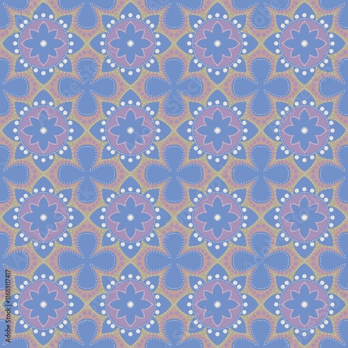 Vibrant seamless floral pattern featuring purple flowers and blue petals on a soft background