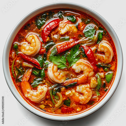 Vibrant Shrimp Soup with Fresh Herbs and Spices in a Bowl, Perfectly Crafted for Culinary Enthusiasts and Food Photography Proposals